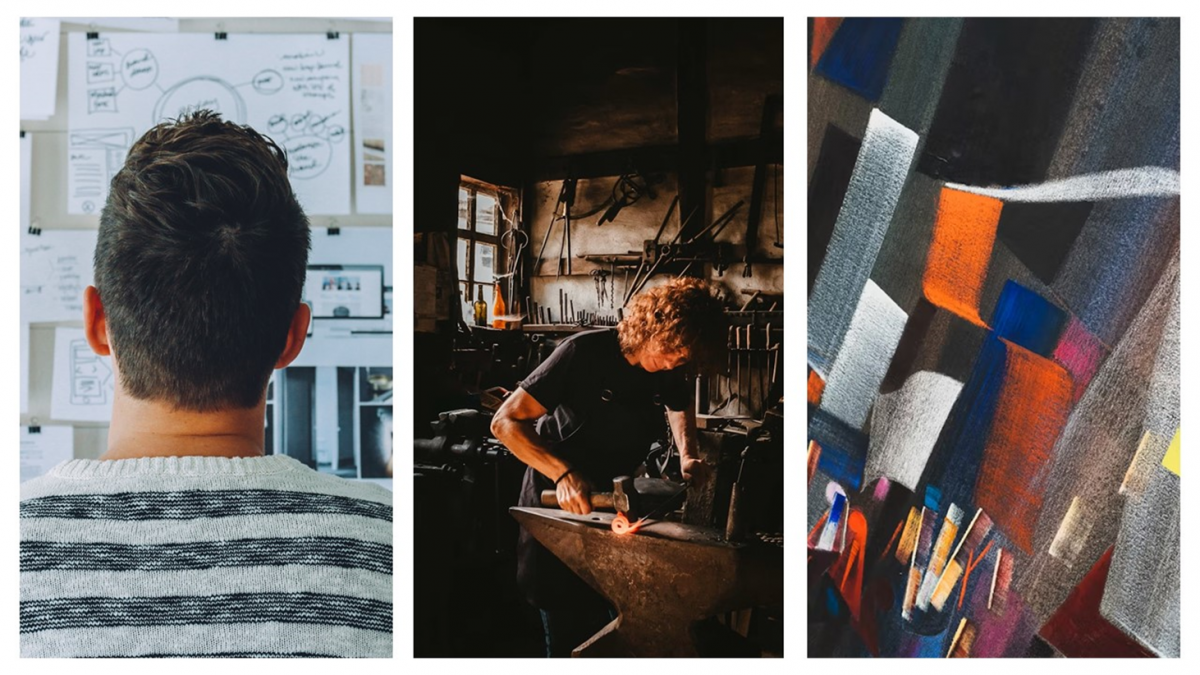Figure 2: [Science](https://pixabay.com/de/photos/konzept-mann-papiere-person-planen-1868728/), [Art](https://unsplash.com/es/fotos/una-pintura-de-un-paisaje-urbano-con-mucho...) and [Craft](https://unsplash.com/de/fotos/mann-mit-hammer-beim-schmieden-auf-amboss-...). Collage: Dr. Stefan T. Siegel (Pexels/Pixabay, Unplash/Fabian Bächli, Unsplash/Malcolm Lightbody)